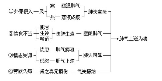 与西医病名的关系:包括西医的急慢性支气管炎、肺气肿、慢性肺原性心脏病,肺部感染,心功能不全等疾病。以上疾病的