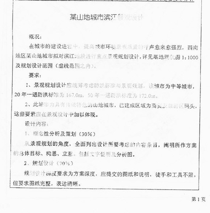 此题,设计用地不大,关键看清原地形。原地形是北部有一明显的土坡,部分地区局部有40M到60M的陡砍,我觉得这里是得分点。关键是处理好这个位置的设计,此处因为落差明显,可设置景观文化墙。别处可自行设计。个人意见,仅供参考。